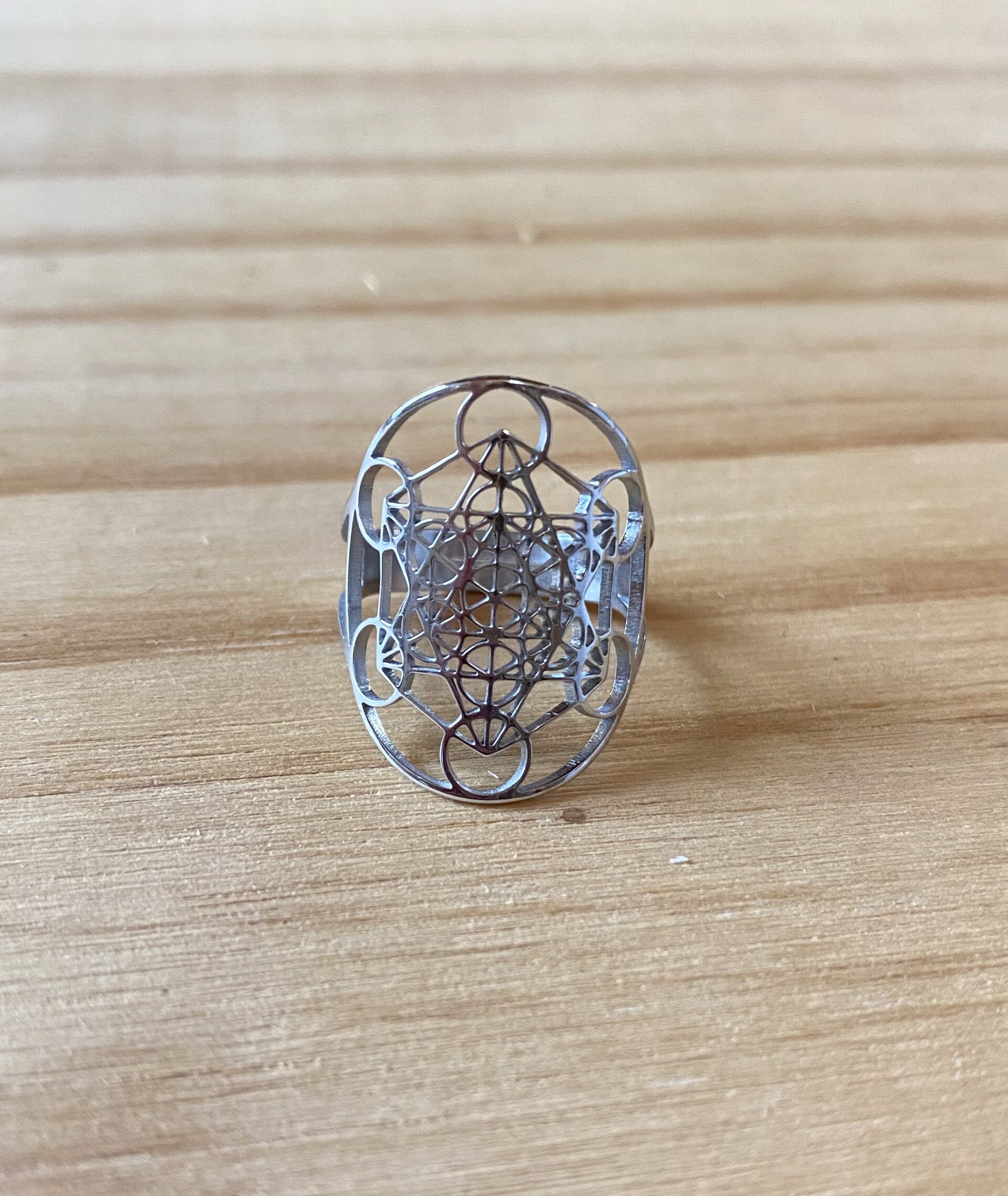 - Bague ornée du motif du cube de Métatron, symbole puissant de géométrie sacrée de protection et d'équilibre spirituel